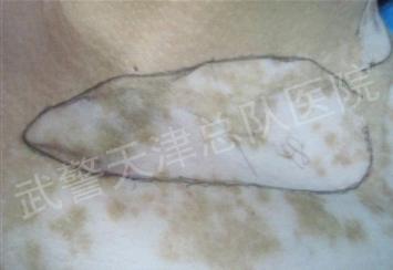 ▲病史:2012年年初发现颈部有白斑出现,去医院买了药膏擦拭没有效果,白斑不但没有消失反而扩大。张小姐又去市立医院皮肤科就诊,医院开了写口服药和擦拭药,这样持续了一个多月无效,经人介绍张小姐来到武警天津总队医院白癜风治疗基地就诊。